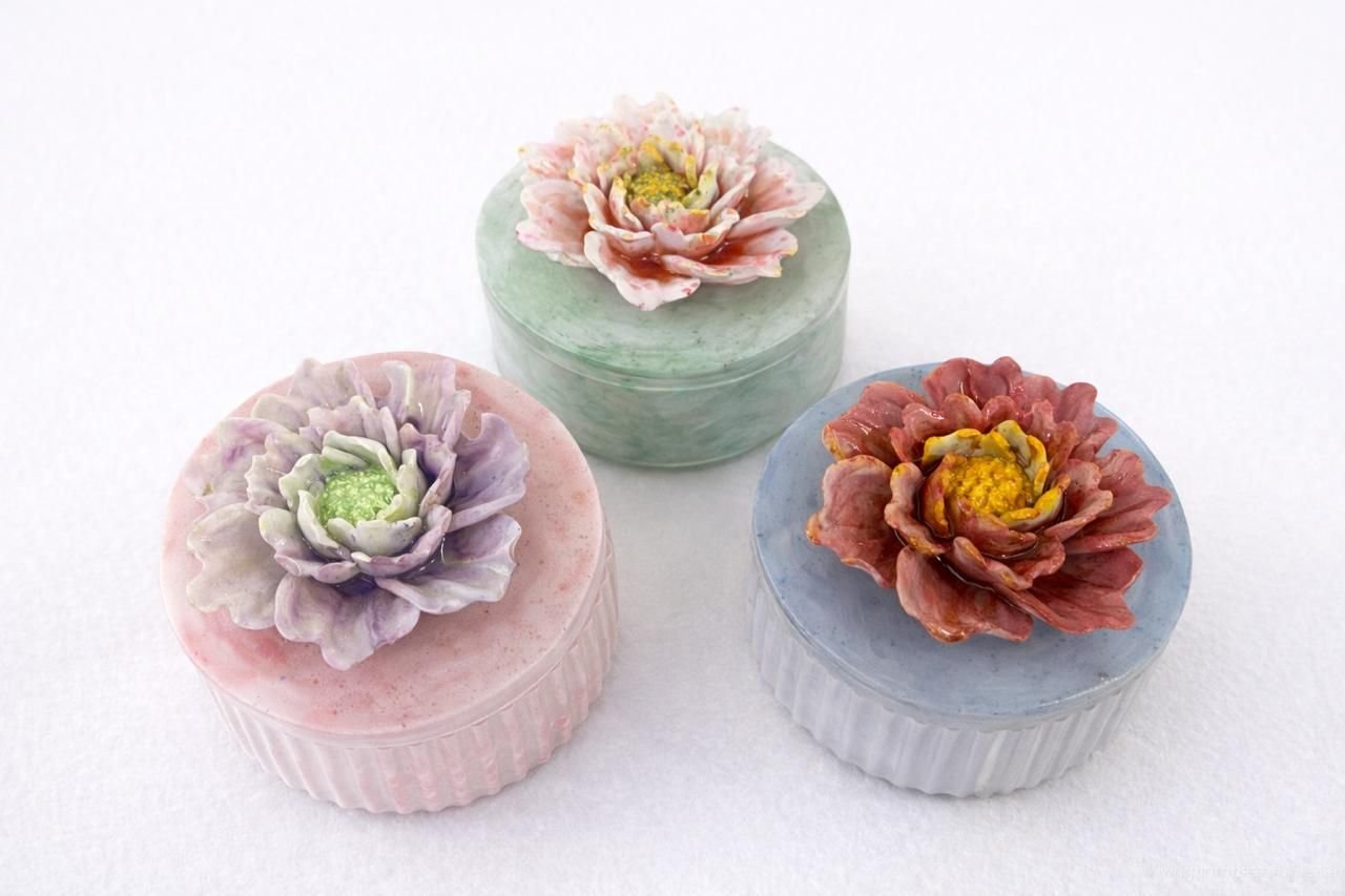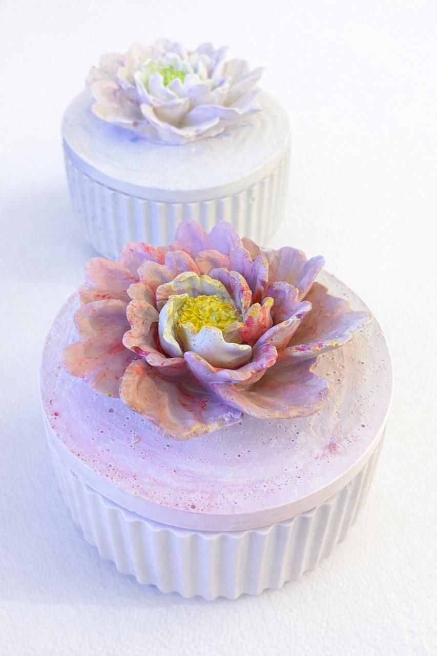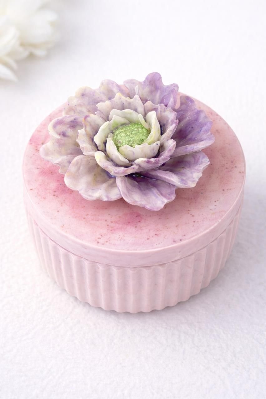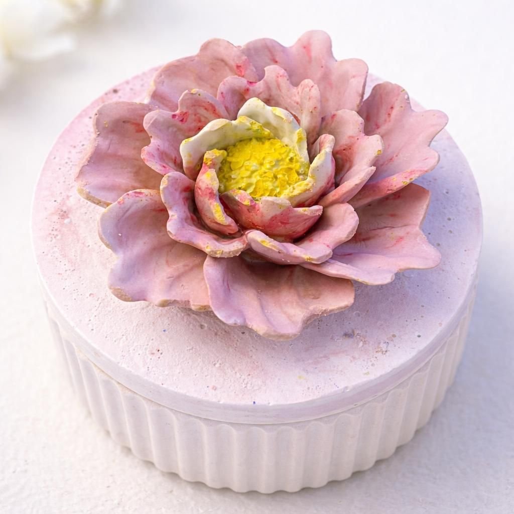 Flower Resin Containers • Can be used as: • Jewellery holders • Trinket or keepsake boxes • Mini storage for cotton pads, hair accessories, crystals, or rings • Works beautifully as vanity décor, bedside storage, or gifting pieces ⸻ 🌿 Benefits • Functional Art – Designed to be used daily while looking like a décor piece • Durable & Long-Lasting – Strong, chip-resistant resin with a smooth sealed finish • Easy Maintenance – Wipe clean with a soft cloth; water-resistant surface • Handcrafted Luxury – Each floral detail is individually shaped, not mass-produced • Unique Colour Stories – Soft pastels, marbled tones, and layered finishes ensure exclusivity